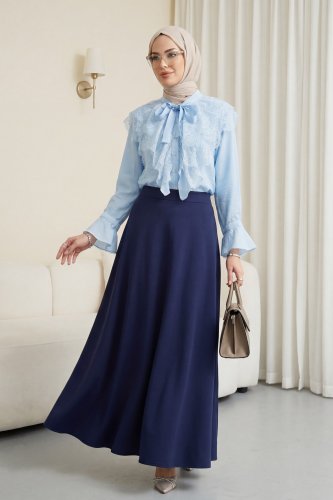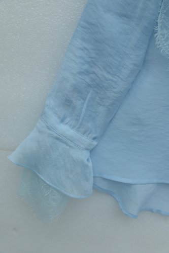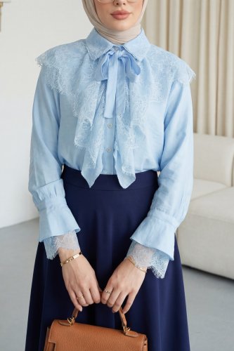 Yakası Bağcıklı Fırfırlı Dantel Detaylı Arkası Uzun Cupra Gömlek Bebe Mavi