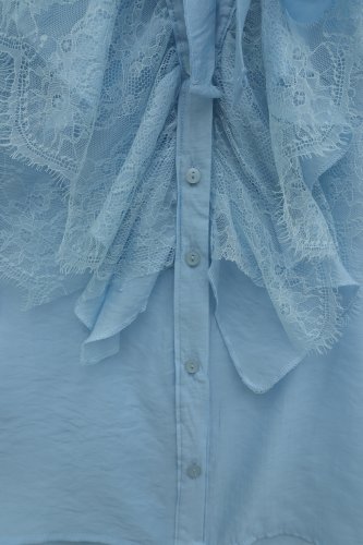 • Yakası Bağcıklı Fırfırlı Dantel Detaylı Arkası Uzun Cupra Gömlek Bebe Mavi
